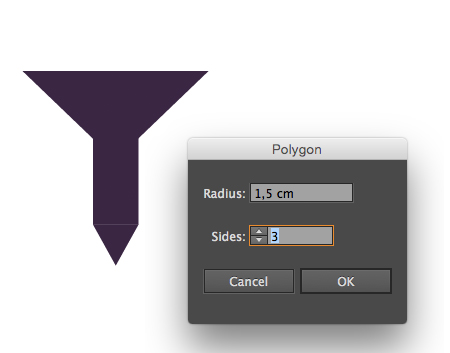 Nakreslite trojuholník pomocou nastroja polygon. Posunieme si kotevné body pomocou Direct Selection (klávesová skratka A) a zaoblime ich pomocou nastroja Convert anchord point tool (klávesová skratka Shift+C).
