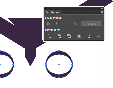 Pokračujte v kreslení elipsy na výrobu oka. Nakreslite ďalšiu elipsu, ktorou prekryjete kruh, duplikujte tento tvar a presuňte ho na opačnú stranu. Z oboch vybraných položiek, použite voľbu Exclude  - zlúčite kruh a elipsu spolu. Viac informácií ako pracovať s cestárom.