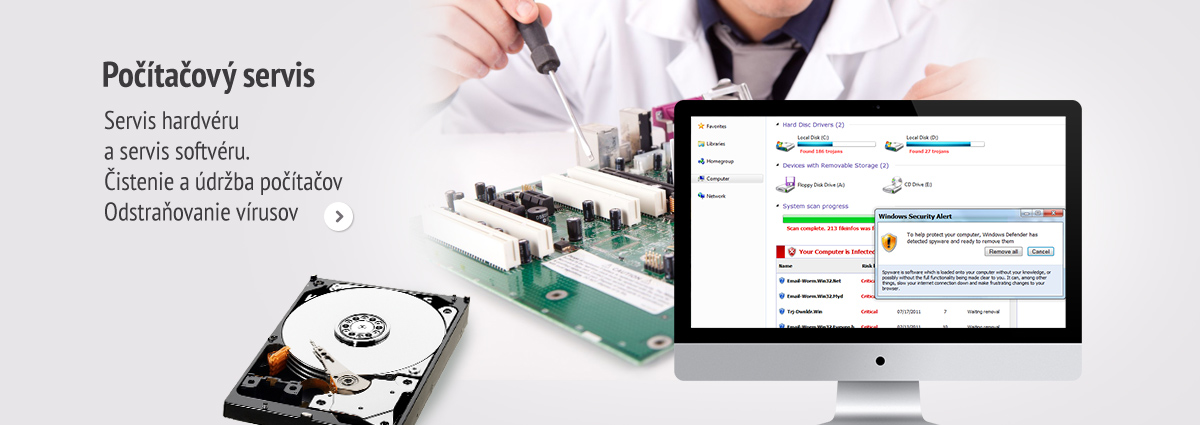 Poskytujeme hardvérové a softvérové služby. Našou prioritou je analýza poruchy zariadenia a jeho riešenie. Vieme však poradiť alebo určiť najvhodnejšiu IT techniku pre vás alebo vaše podnikanie. Zameriavame sa na bežných užívateľov a malé firmy. Váš pokazený notebook alebo počítač môžete priniesť osobne alebo aj zaslať poštou. Analyzujeme problém a zašleme vám cenovú ponuku.